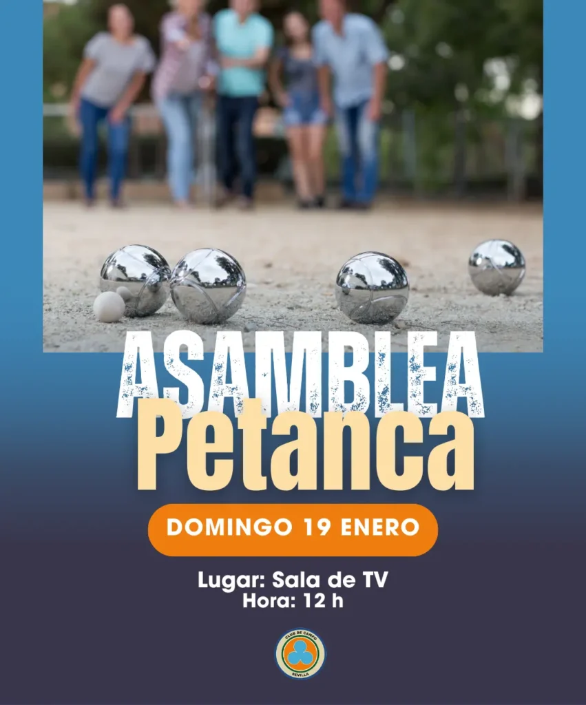 Nos complace informaros sobre la próxima Asamblea de Petanca, programada para el día 19 de enero de 2025 a las 12:00 en la Sala de Televisión.