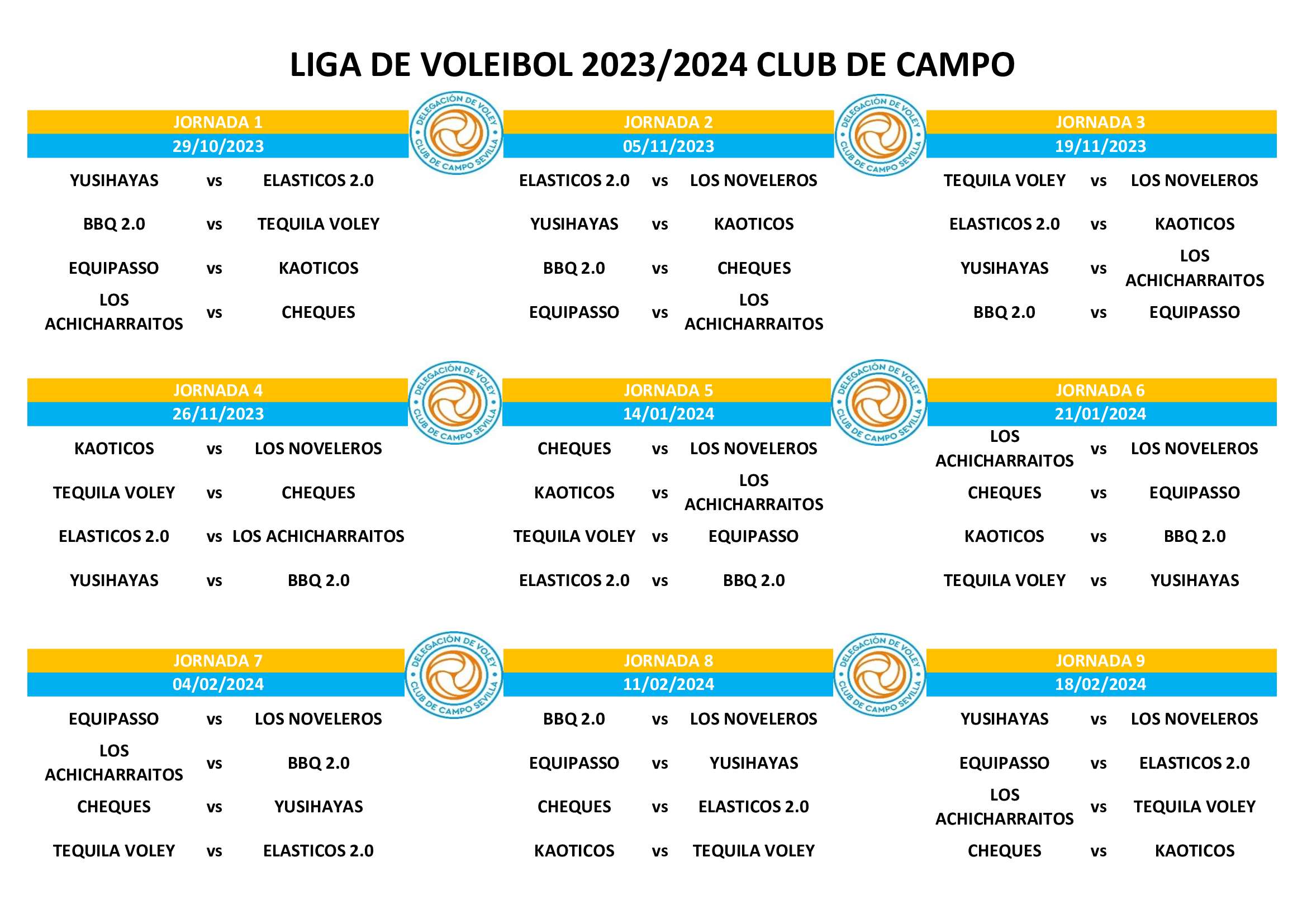 Desde el Club de Campo queremos animar a todos nuestros socios y aficionados a que apoyen a nuestros equipos en esta ilusionante temporada, que promete estar llena de emociones y buen voleibol. Podéis consultar el calendario completo en la siguiente imagen: