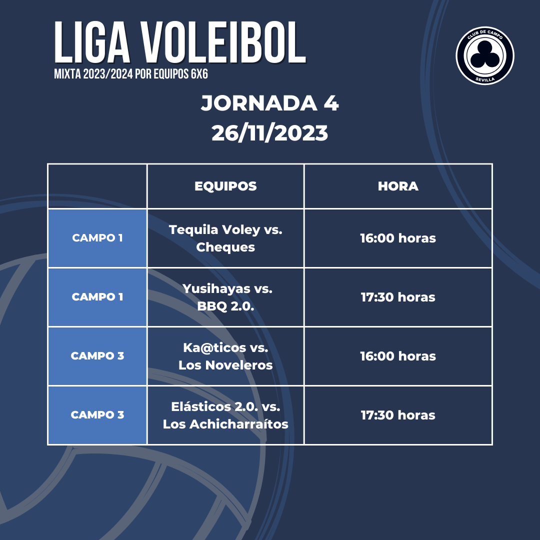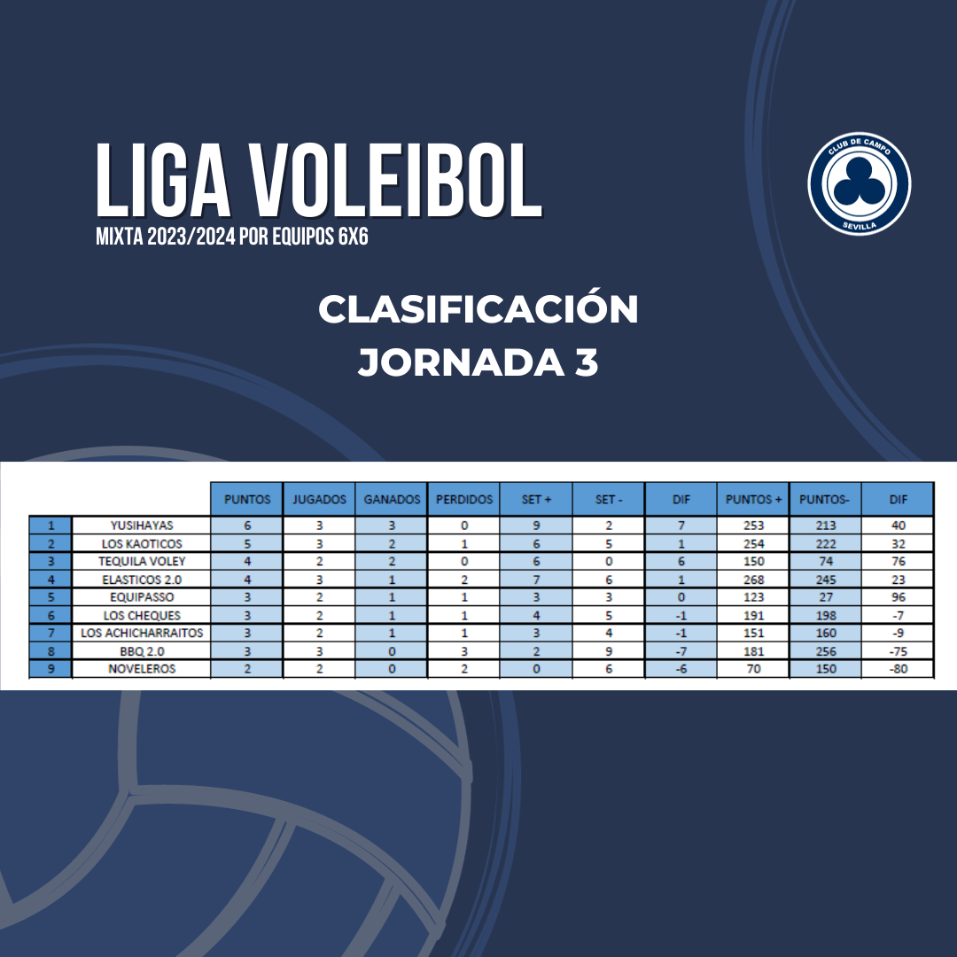 Adjuntamos los resultados de los diferentes encuentros disputados en la Jornada 3 de la Liga de Voleibol Mixta por equipos 6×6: