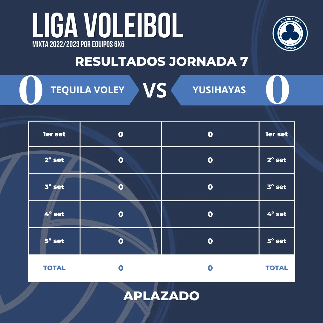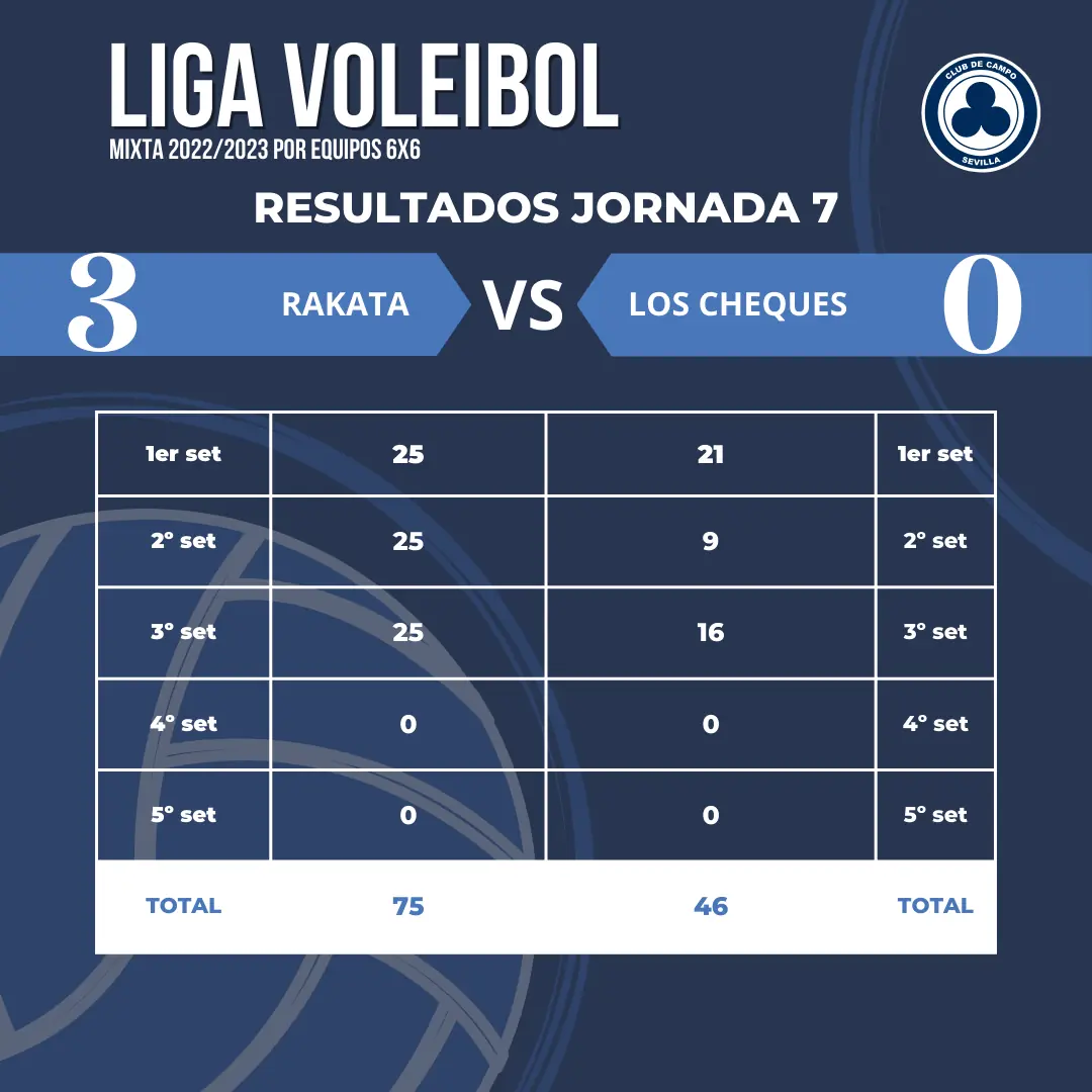 Adjuntamos los resultados de los diferentes encuentros disputados en la Jornada 7 de la Liga de Voleibol Mixta por equipos 6×6: