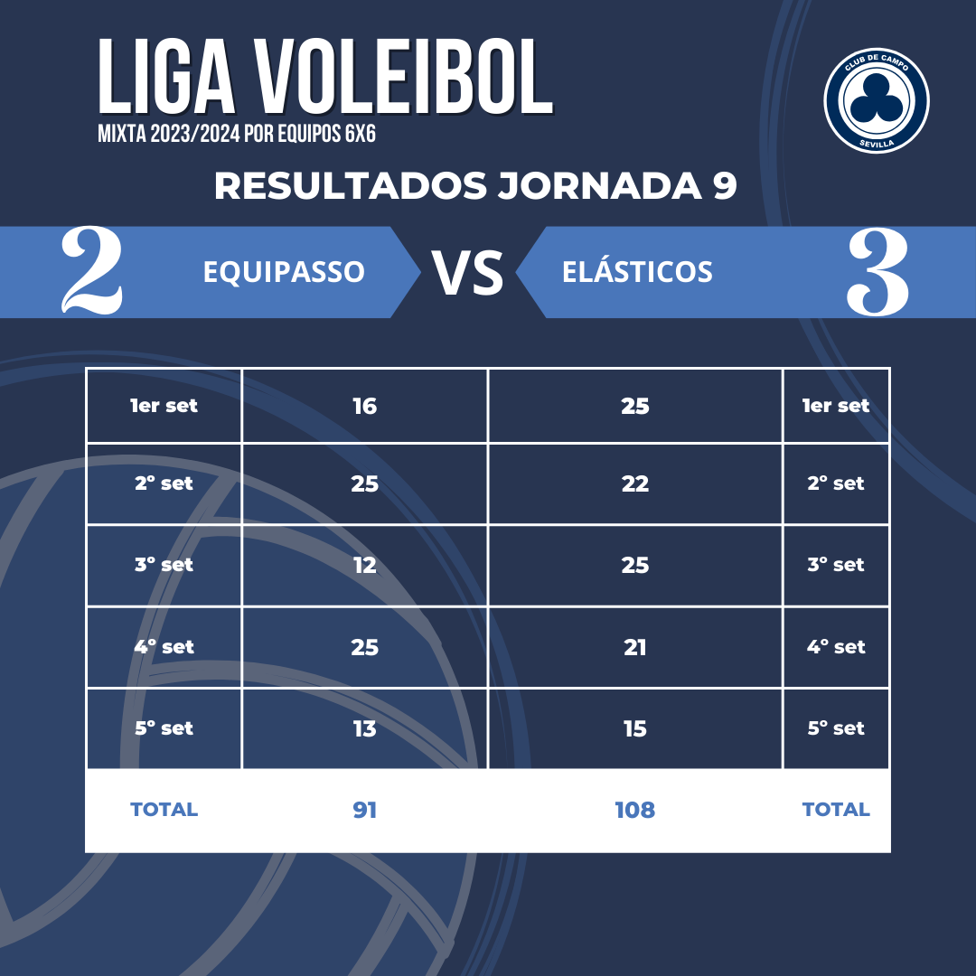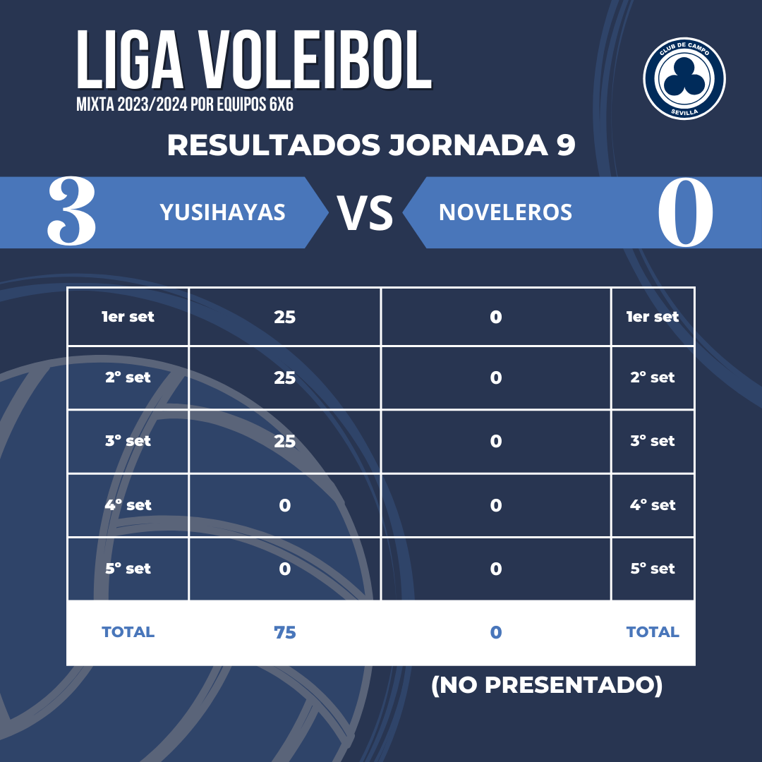Adjuntamos los resultados de los diferentes encuentros disputados en la Jornada 9 de la Liga de Voleibol Mixta por equipos 6×6:
