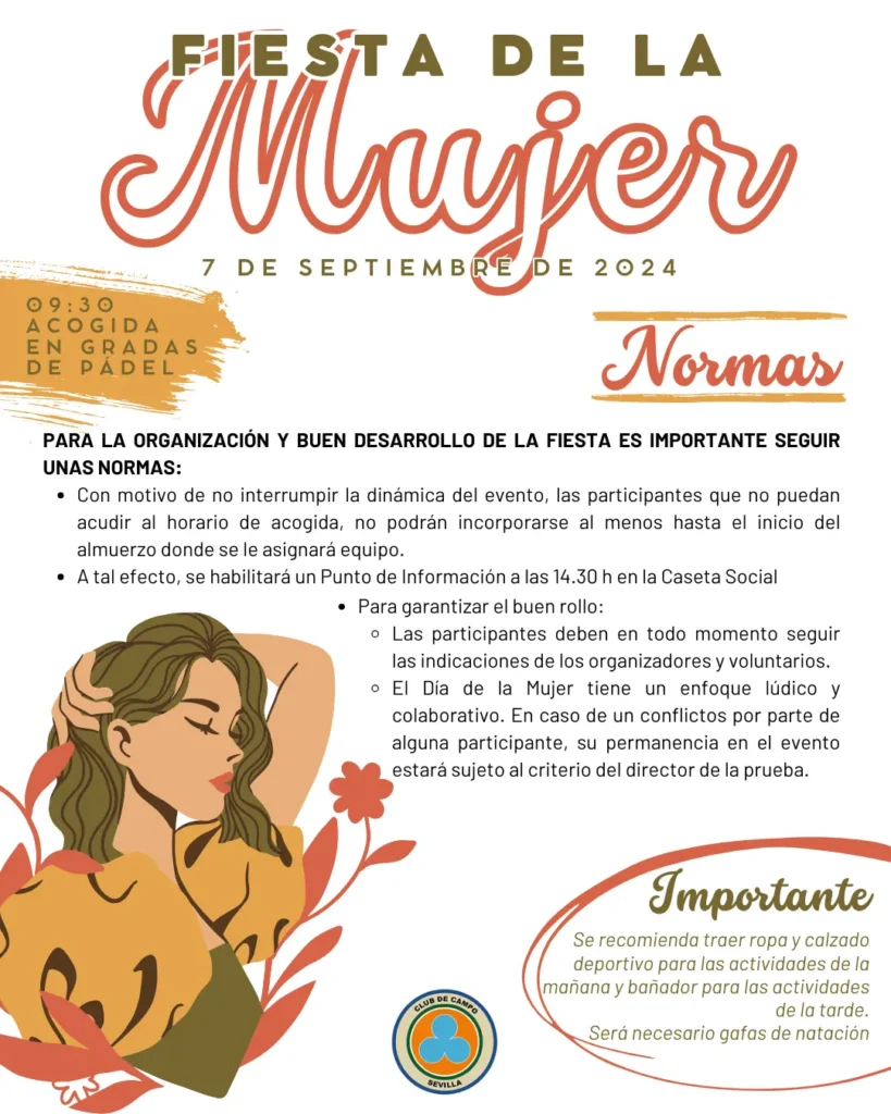 Las actividades comenzarán a las 9:30 en las Gradas de Pádel, donde seremos recibidos con una cálida bienvenida. A lo largo del día, tendremos una variedad de actividades y sorpresas preparadas para que todas disfruten. Desde competiciones deportivas hasta momentos de relajación en la piscina. Además, no olvides revisar las reglas del evento que están adjuntas en la foto para asegurarte de que todos podamos disfrutar de una jornada segura y agradable.