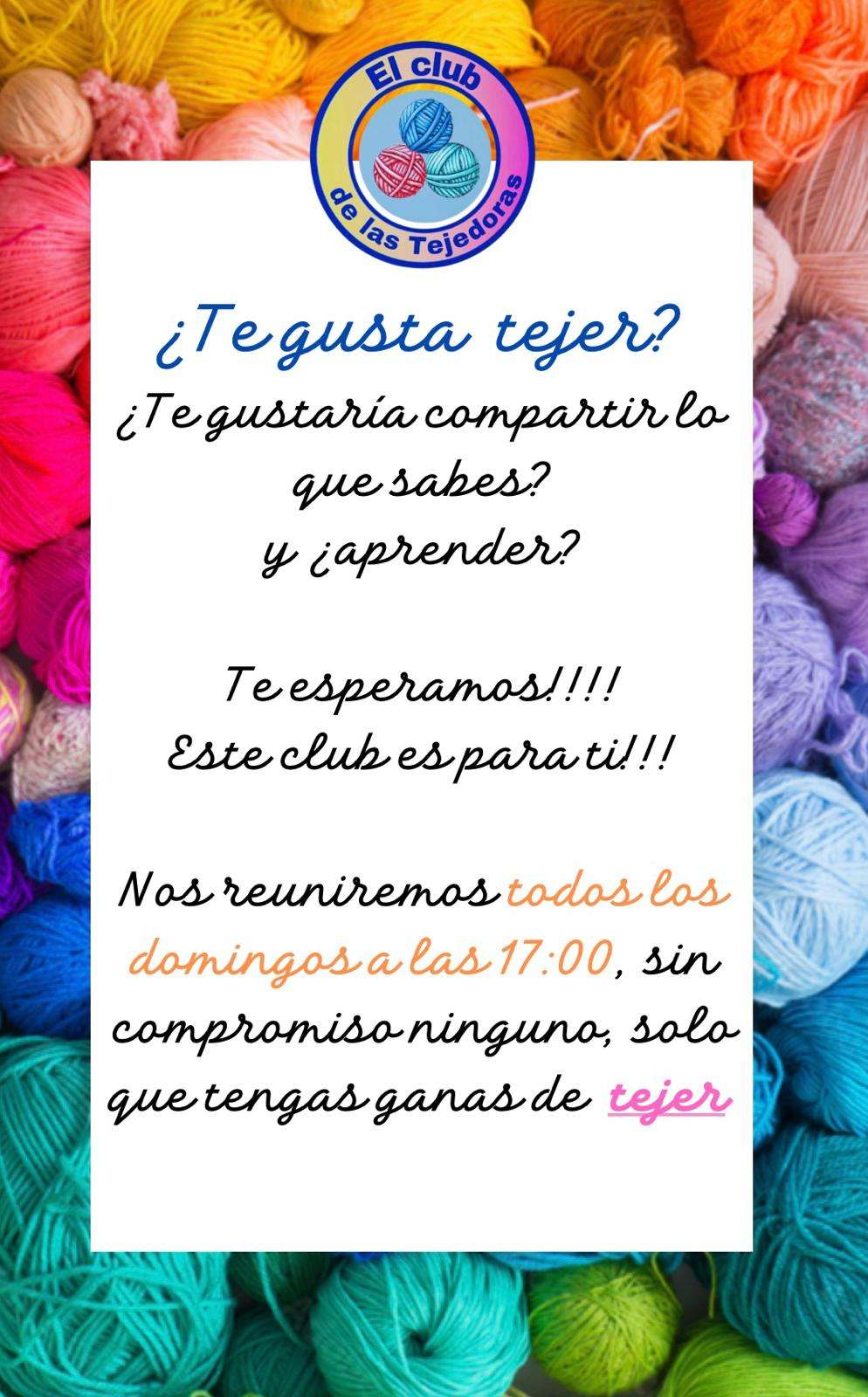 El ‘Club de las Tejedoras’ es una iniciativa que quiere ofrecer una oportunidad de disfrutar de una tarde diferente y divertida. Cada domingo a las 17:00, se reunirán para tejer juntos, intercambiar consejos, mostrar nuestros proyectos y pasar un buen rato.