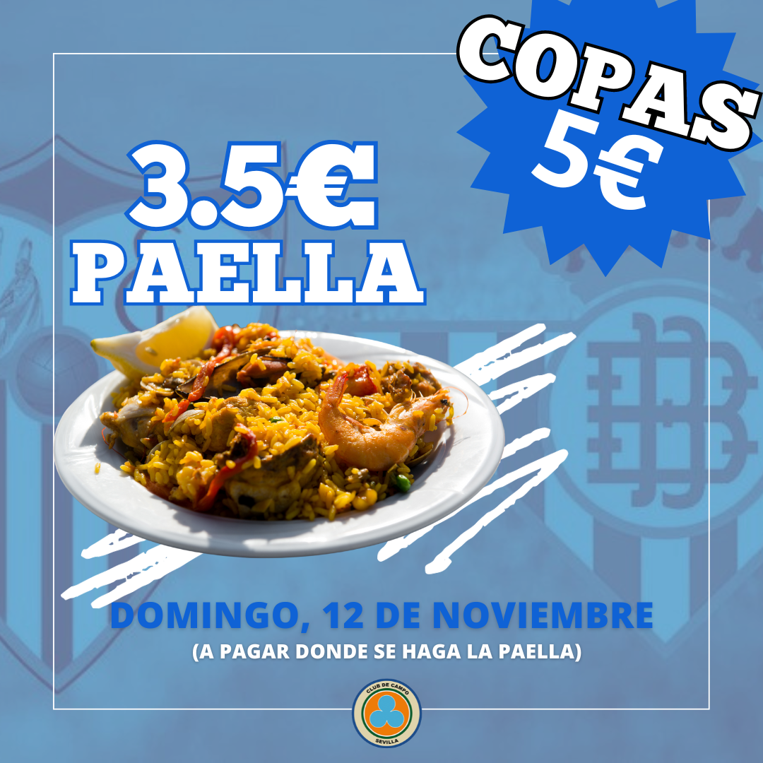 Para hacer más amena la previa, ese día dispondremos de tapas de paella a 3,5 euros y copas a 5 €.
